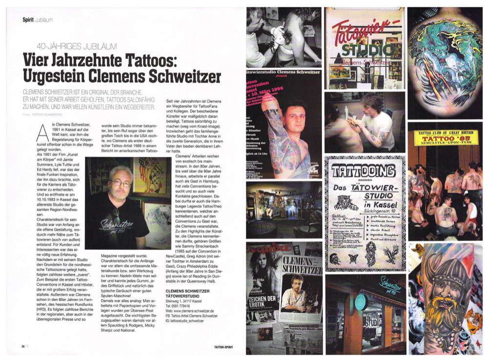 Der Tätowierkünstler Clemens Schweitzer eröffnete 1983 sein Studio in Kassel und ist heute mit seiner